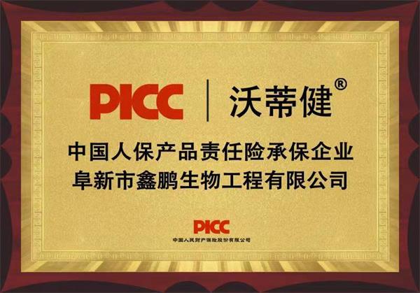 阜新市鑫鵬生物工程有限公司旗下沃蒂健、黑晶尖、芯霸、鑫鵬沃普爾、田寶畝、久畝神、九畝神、炭精神、稔如意、棚地神、松峰山、金禾財(cái)有根等系列產(chǎn)品,順利通過PICC中國(guó)人民保險(xiǎn)審核,為企業(yè)全線產(chǎn)品承保產(chǎn)品責(zé)任險(xiǎn),證明公司產(chǎn)品的真實(shí)、合格,也標(biāo)志著阜新市鑫鵬生物工程有限公司為消費(fèi)者提供安全保障的決心。